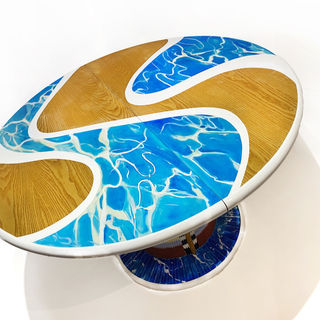 Trompe l'Oeil oil paint and shiny varnish with white and black lacquer and gradient paint.